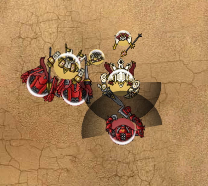 We inched toward each other, eventually meeting on my right (near side of the shot.) Iron Fang Pikemen put up a decent showing, trading about half their number to kill a unit of zealots. Bastions must have forgotten to take their vitamins because they missed